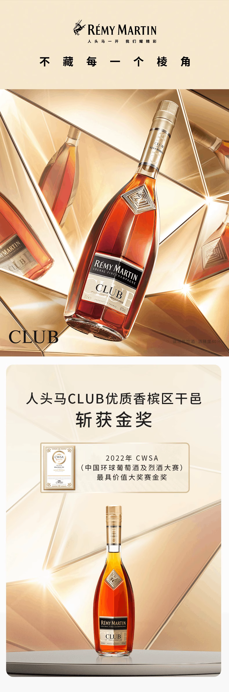 法国人头马CLUB优质香槟区干邑白兰地