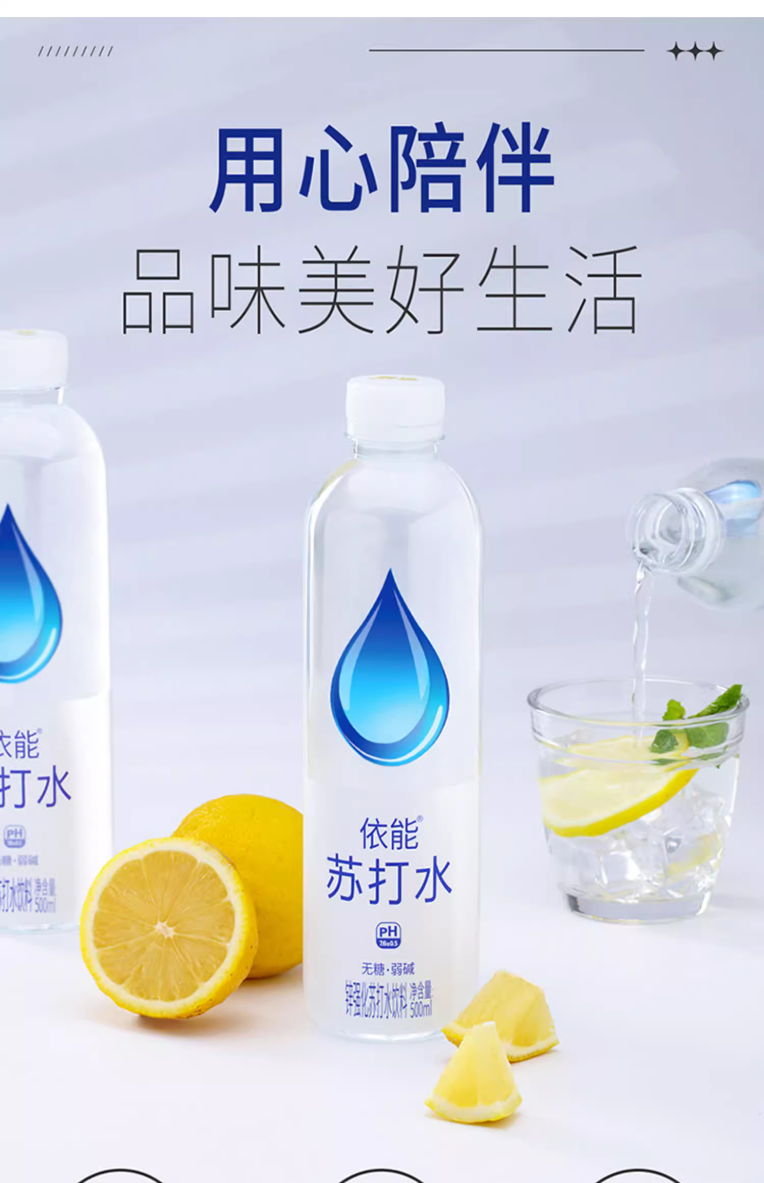 依能苏打水500ml*24瓶整箱弱碱锌强化青柠苏打水饮用水饮料饮品